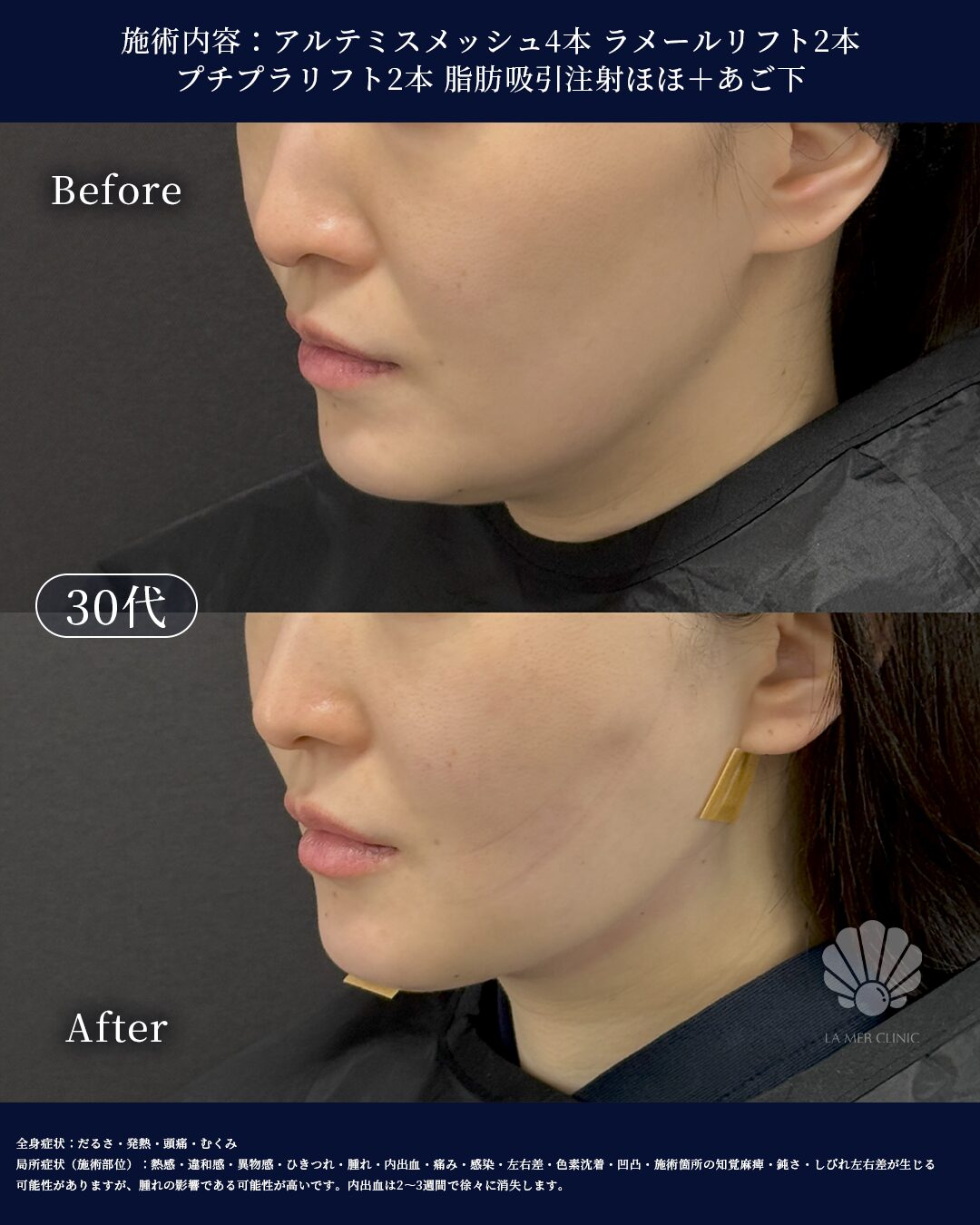 【モニター症例】脂肪吸引注射+糸リフト(フェイスライン・口横・あご下)