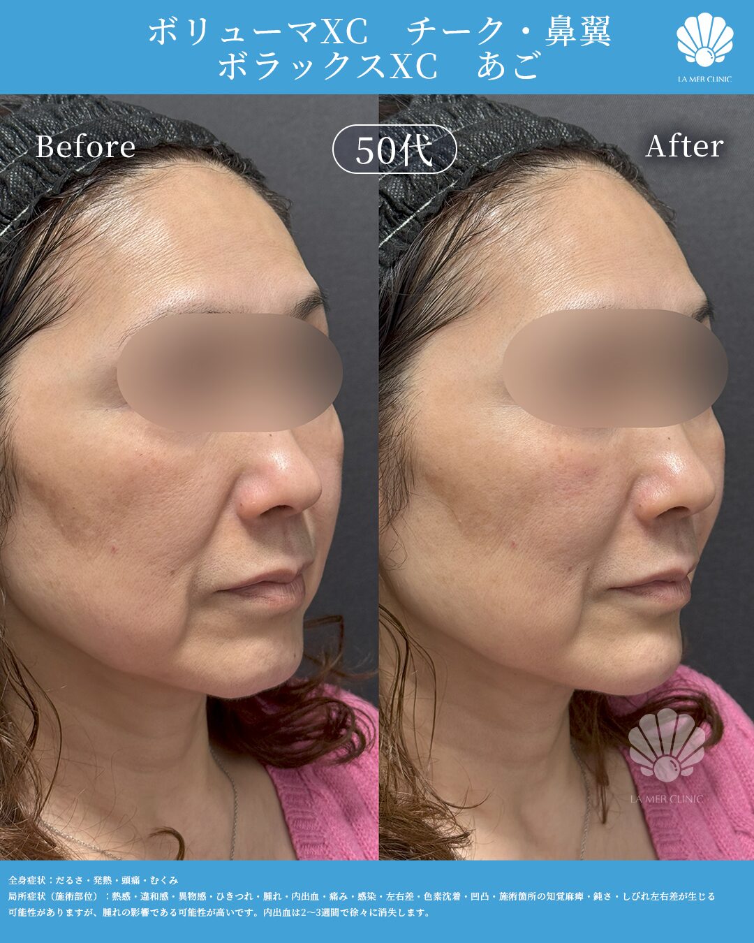 • 名古屋でほうれい線を改善したい方へ|チーク・鼻翼基部・アゴのヒアルロン酸注入で若々しい印象へ(52歳女性)