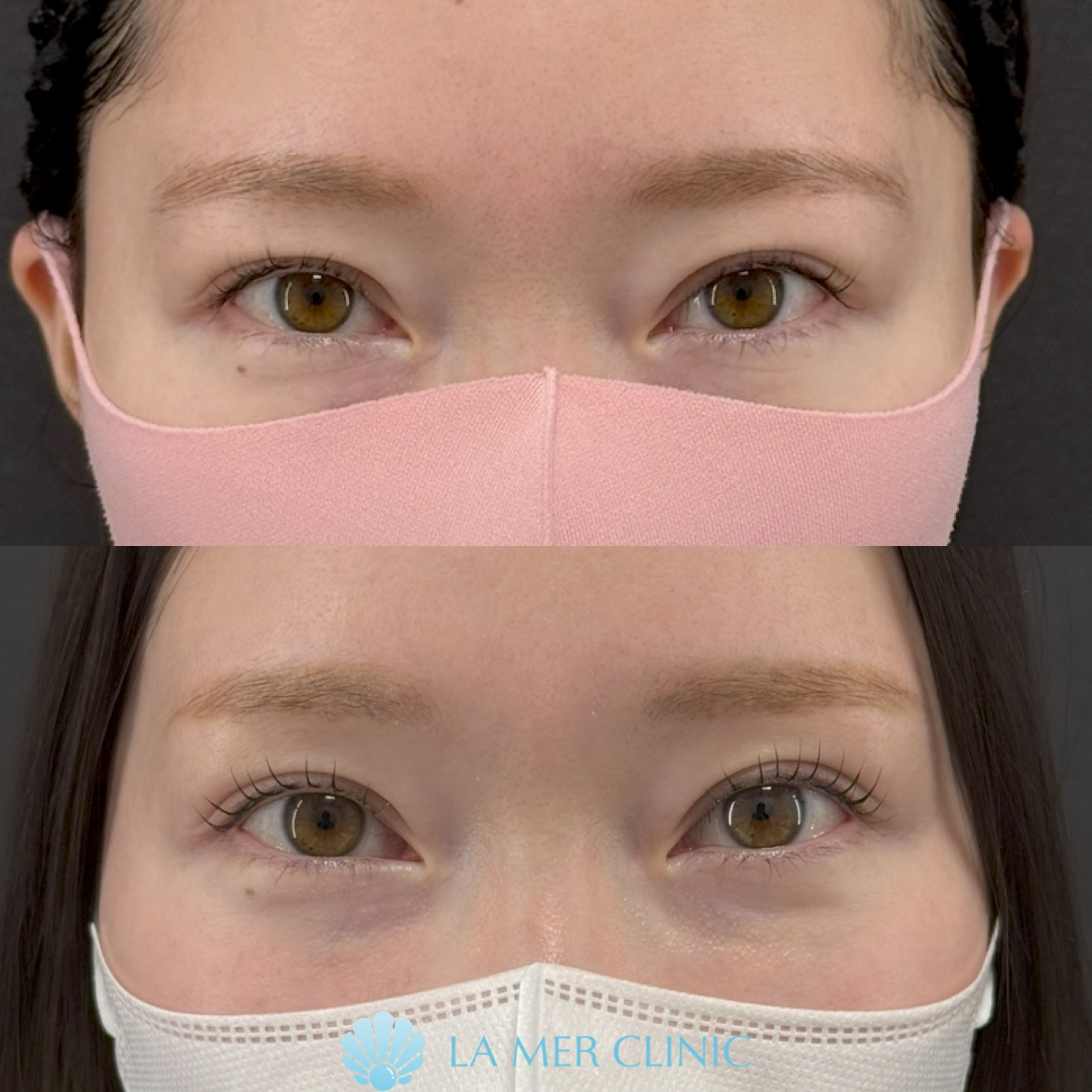 術後の腫れにより、一時的にまぶたが開きにくく、二重幅が乱れて見えることがあります。