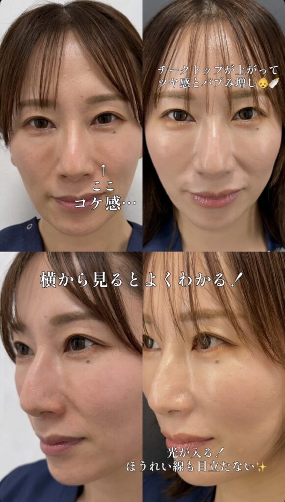 また、中顔面がすっきり上がることで、顔の縦の長さが短く見え、バランスが整うのもこの施術の魅力です。
