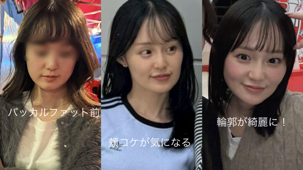 実は、バッカルファット前の写真の時よりも、一番右の写真の時の方が体重が増えているんです><
