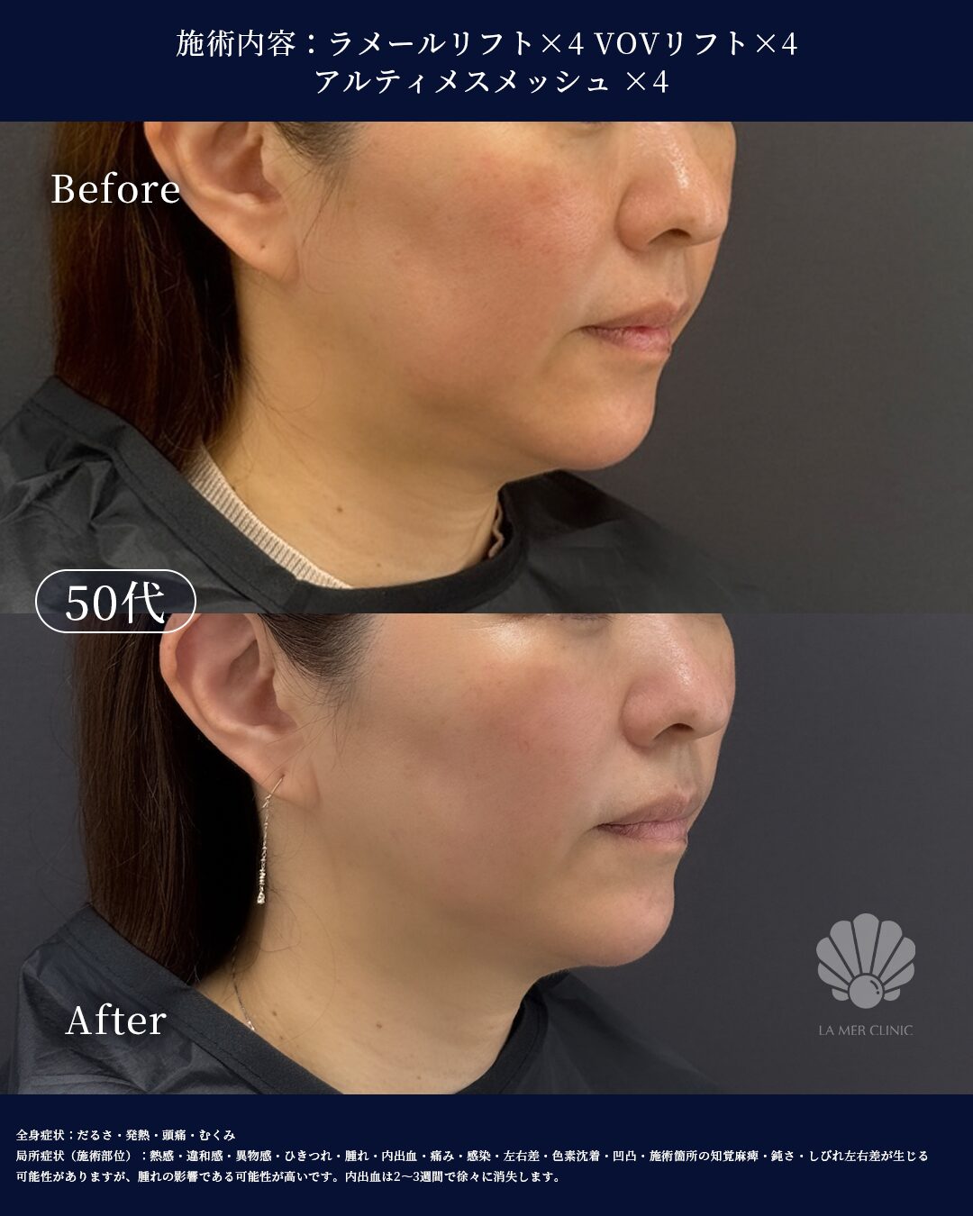 ひとりひとりに合わせた糸リフトを選び挿入することで、即効性と自然な仕上がりの両立を目指しました。