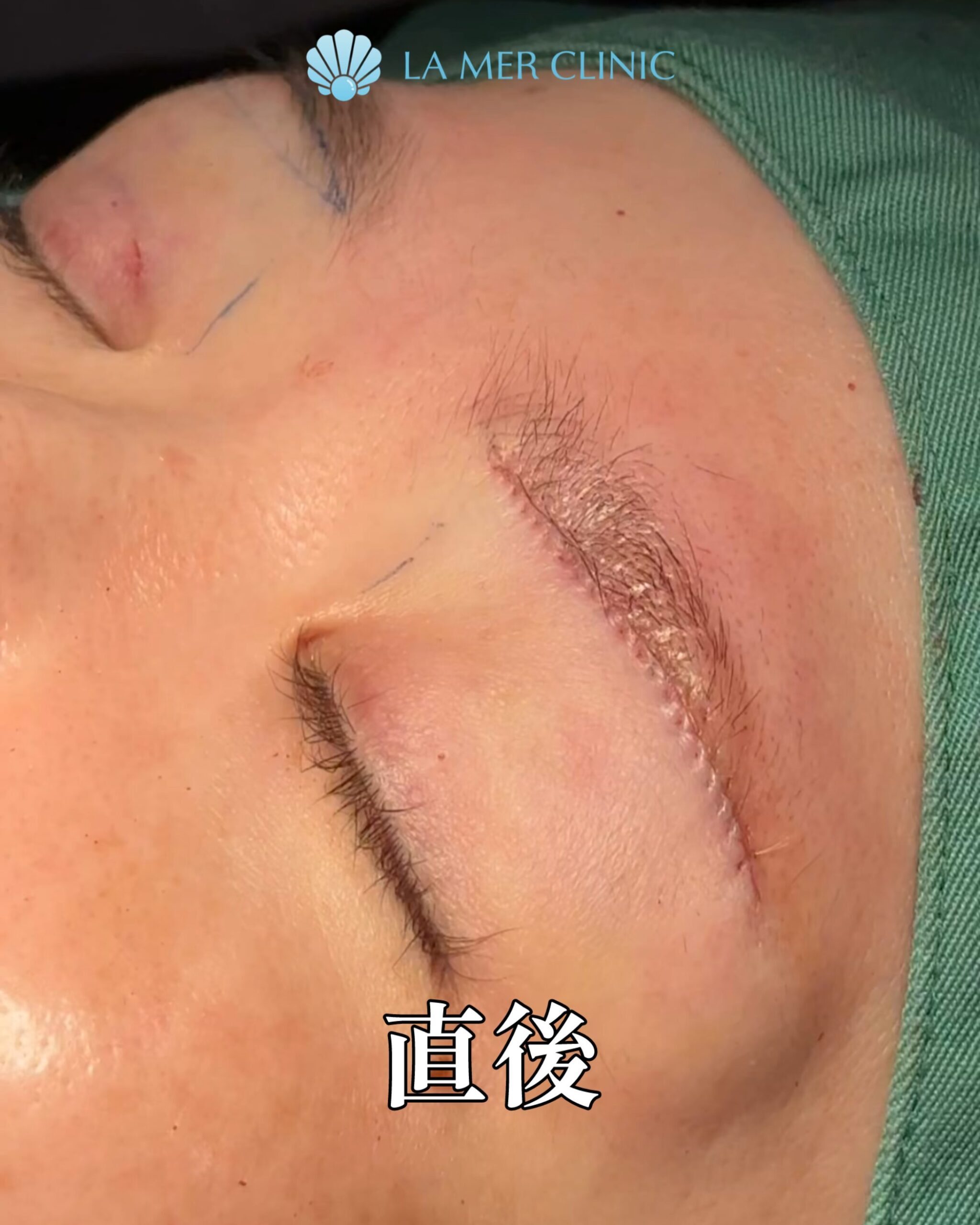 - 術後3ヶ月:傷跡は眉毛の下に自然に隠れ、周囲から気づかれにくい状態に。