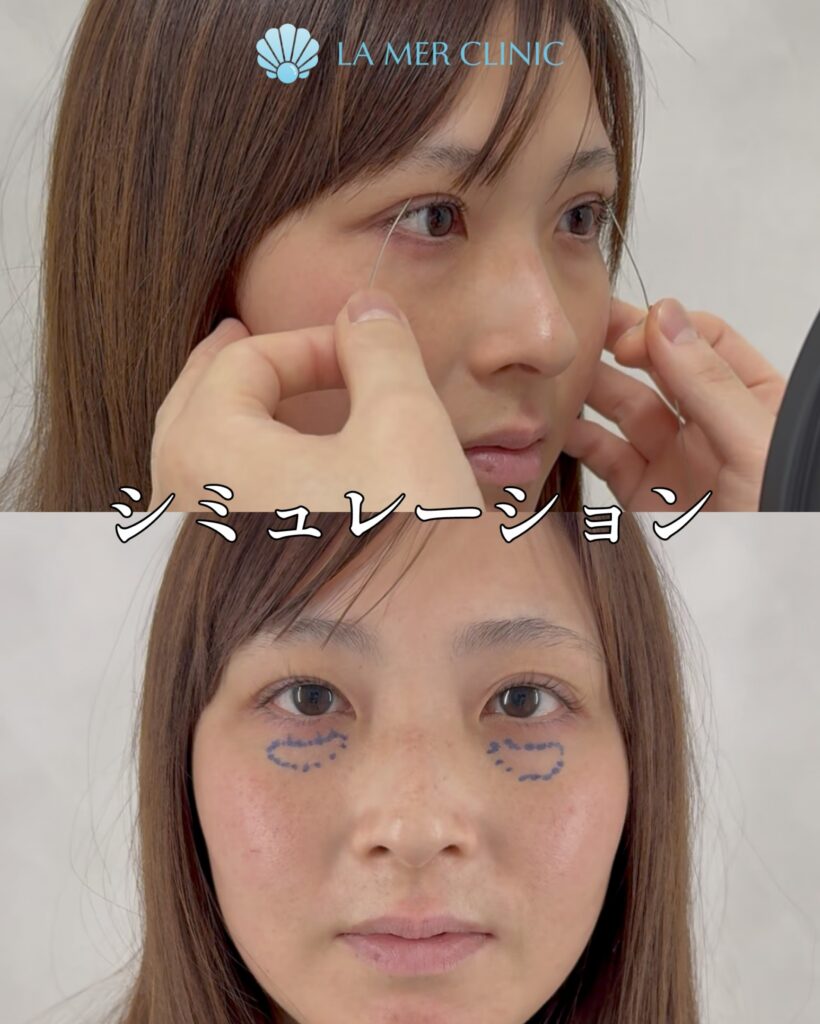 加えて、目の下の膨らみ(眼窩脂肪)にも悩みがあったため、切らないクマ取りも同時にご提案しました。