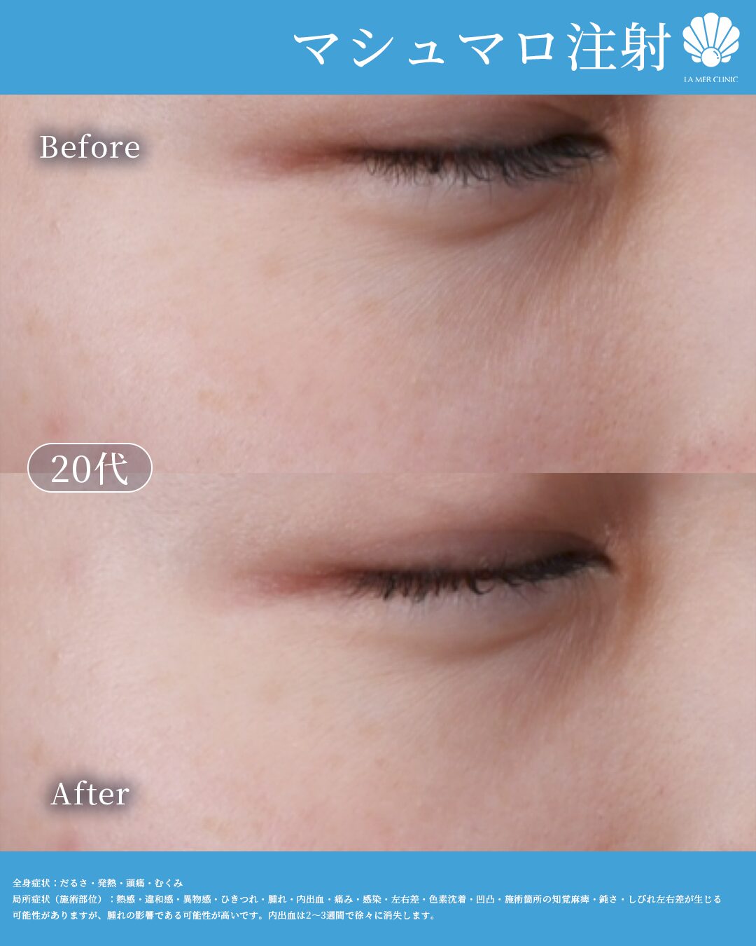 【症例紹介】20代女性|目元の小じわ・乾燥ケアに「マシュマロ注射」▽ 目元の“ちりめんジワ”が気になりはじめたら