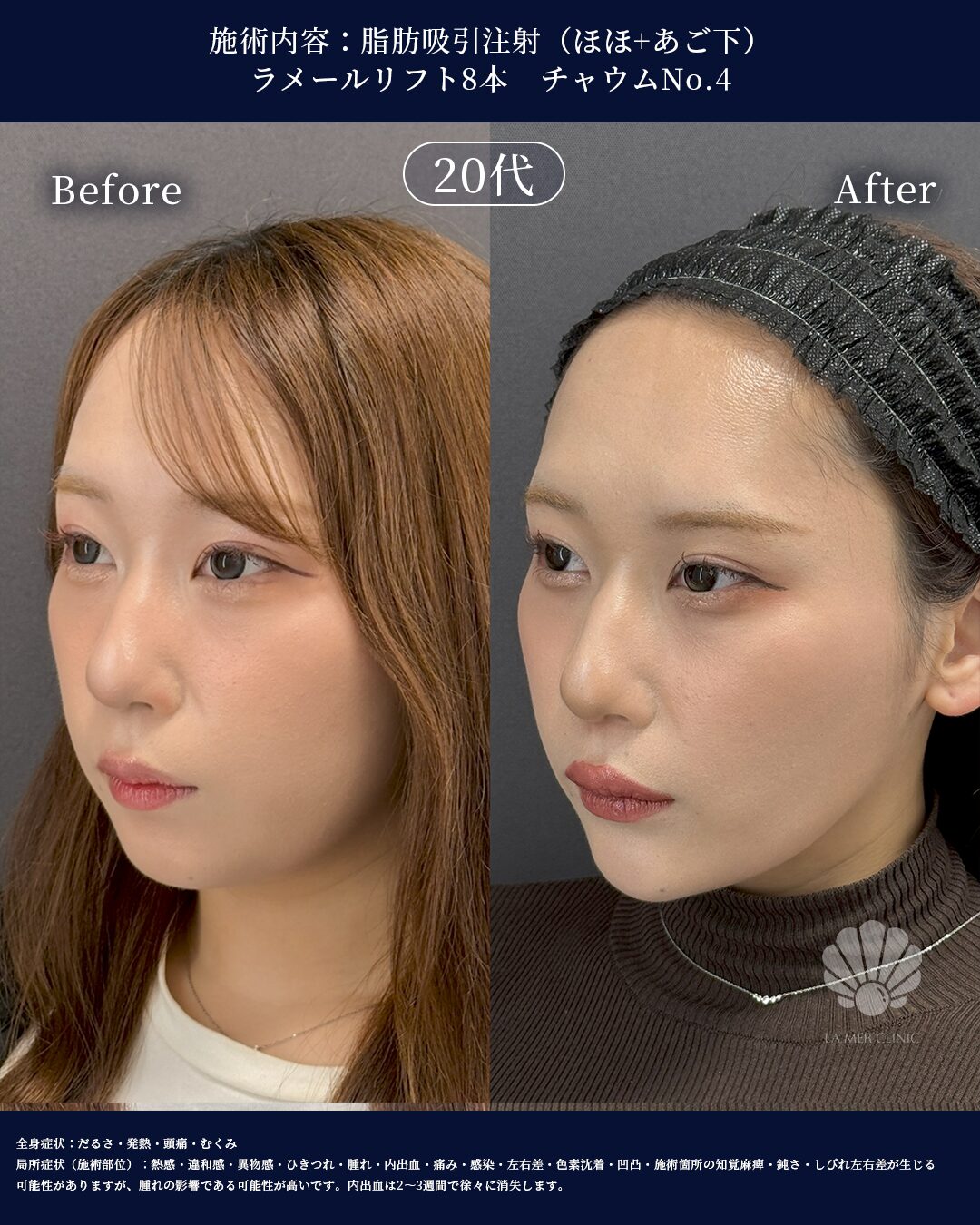 【症例紹介】脂肪吸引注射(ほほ+あご下)+ラメールリフト8本|20代女性|3か月後の経過症例概要