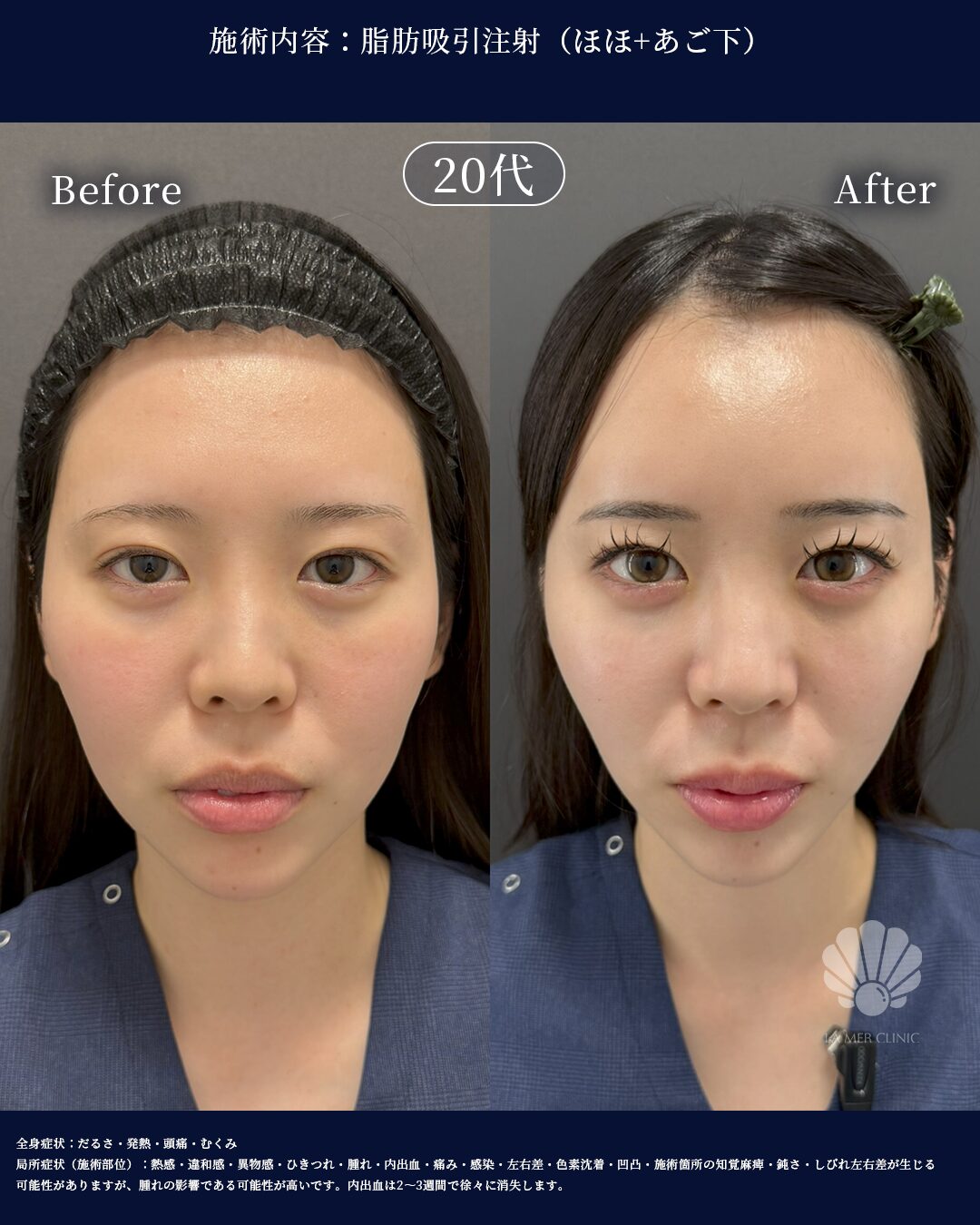【症例紹介】脂肪吸引注射(ほほ+あご下)|20代女性|フェイスラインを切らずに整える症例概要
