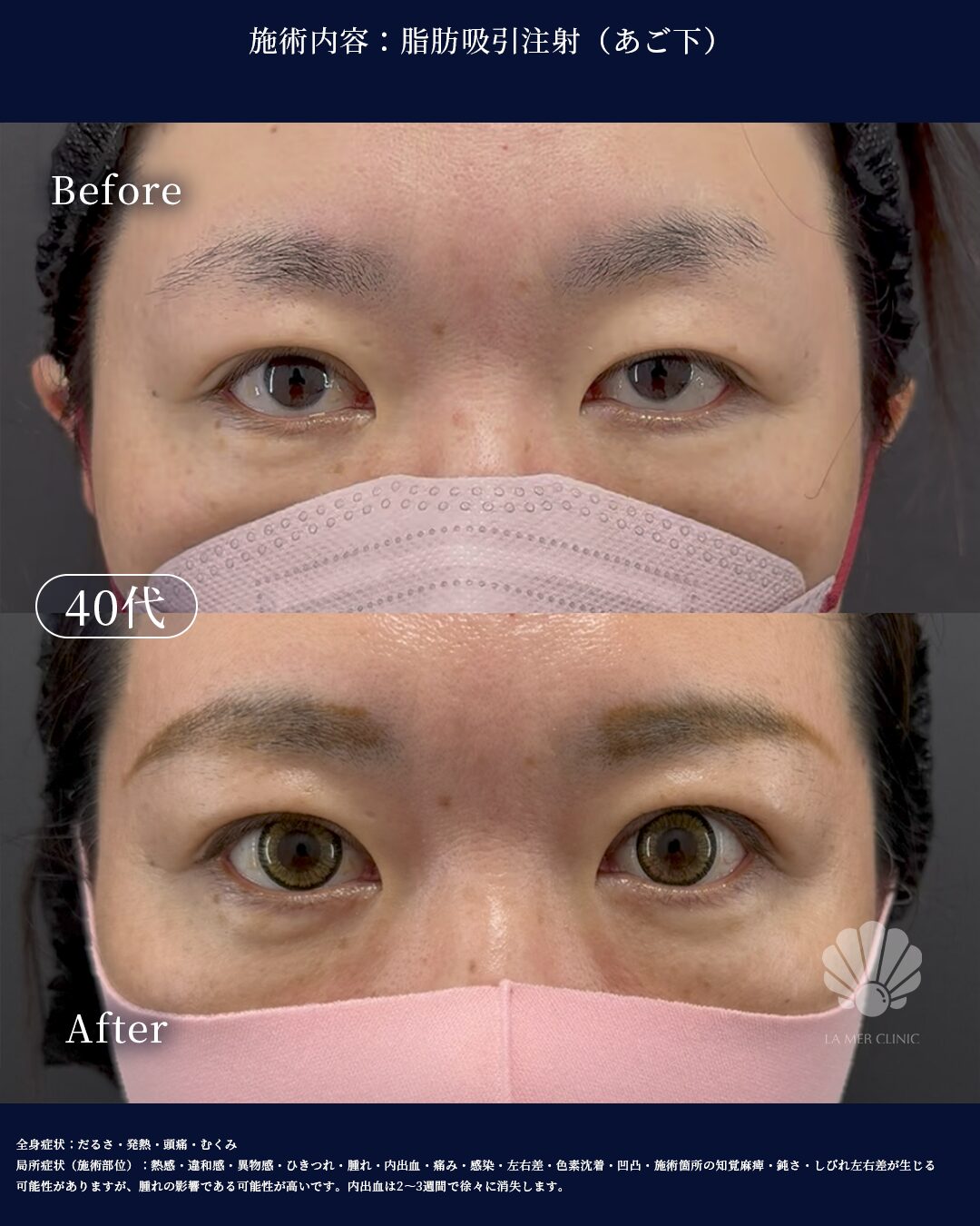 - 将来的に必要であれば、たるみに対する追加治療を検討