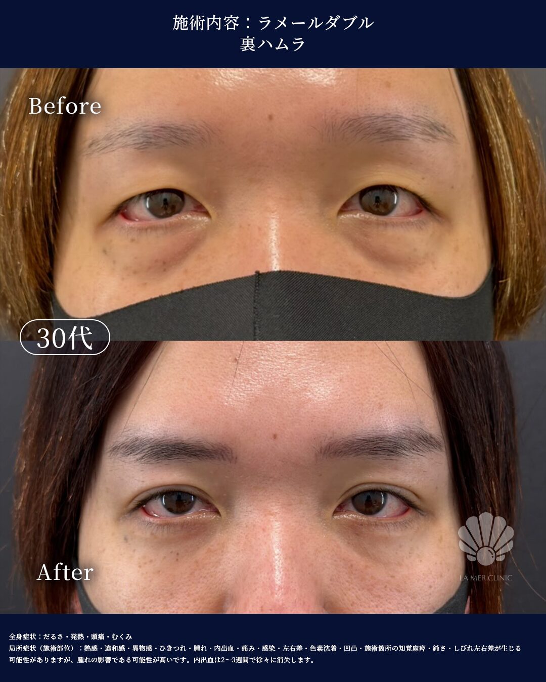 であることから、切らずにクマを根本改善できる「裏ハムラ法」が最適と判断しました。