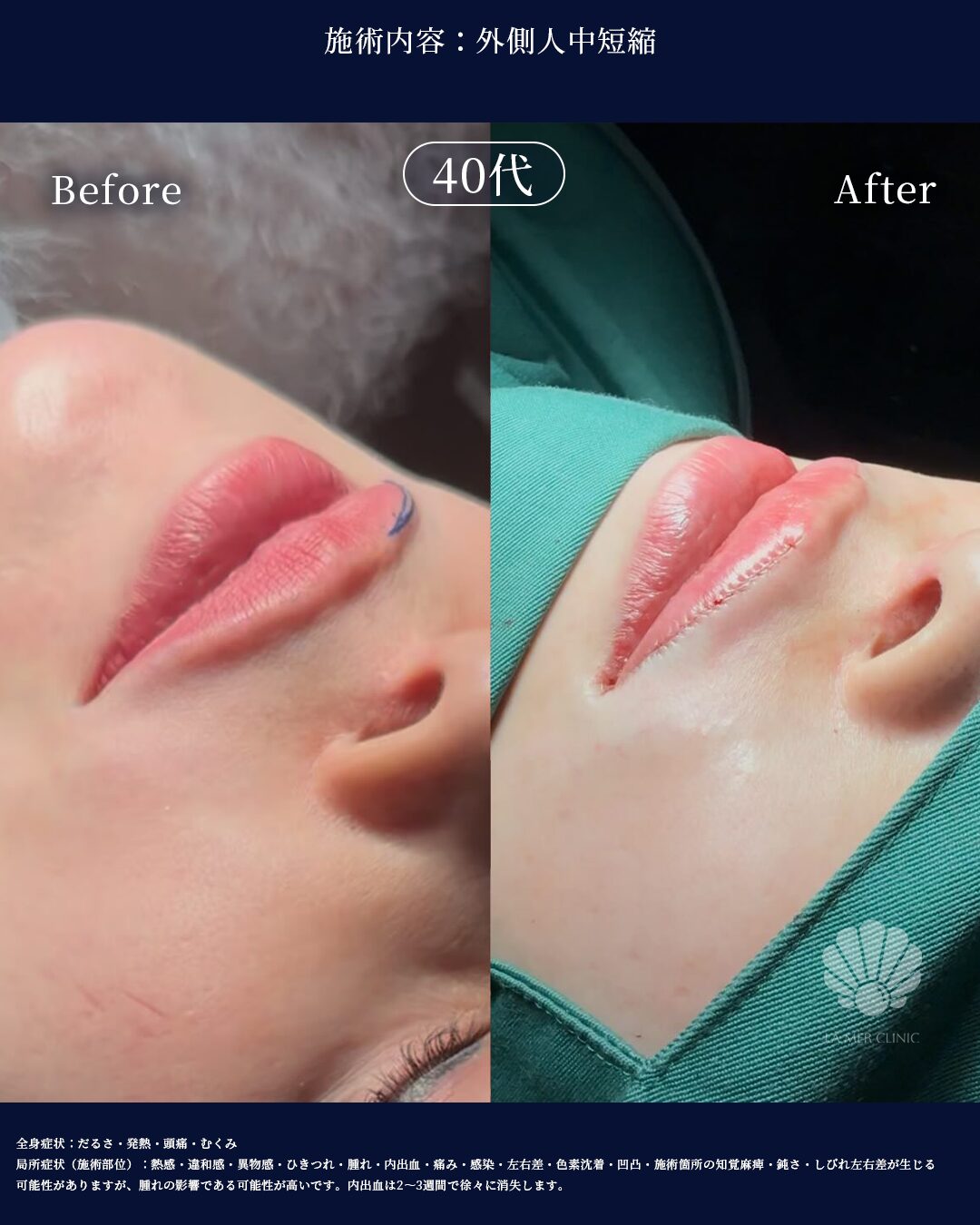 外側人中短縮術(上口唇挙上術)症例紹介|40代女性施術名:外側人中短縮