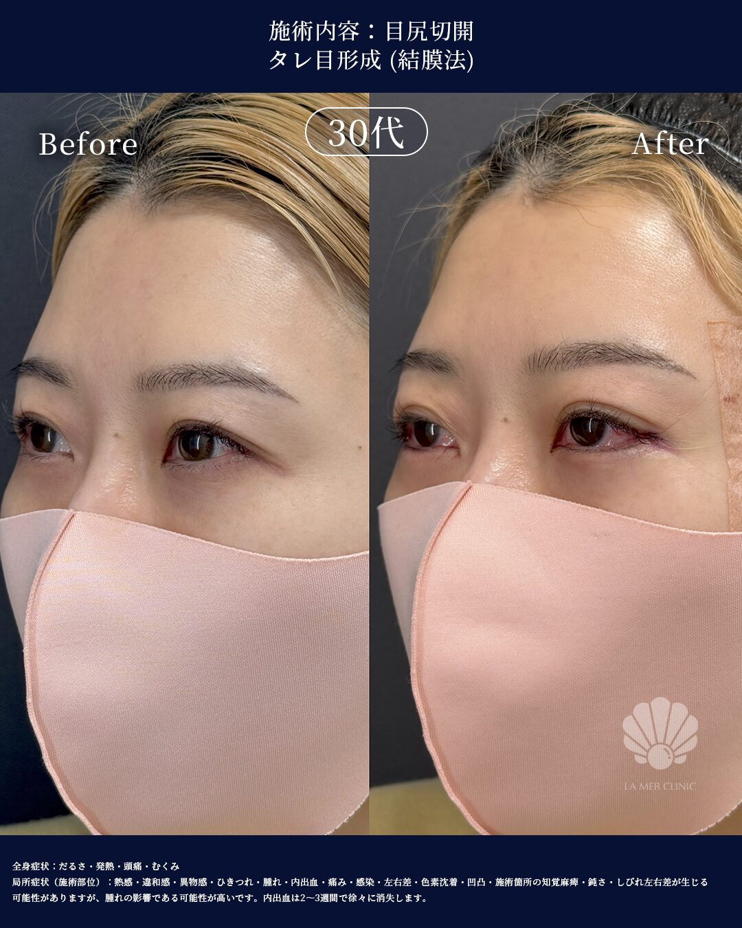 【直後症例紹介】38歳女性|目尻切開+タレ目形成(結膜法)直後