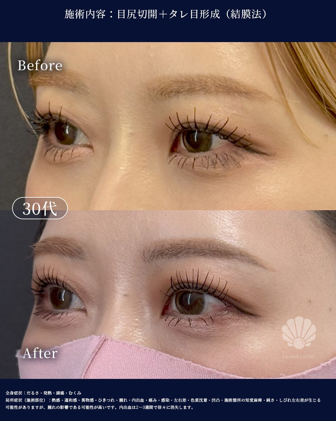タレ目形成を併用することでバランスの取れた仕上がりを目指しました。