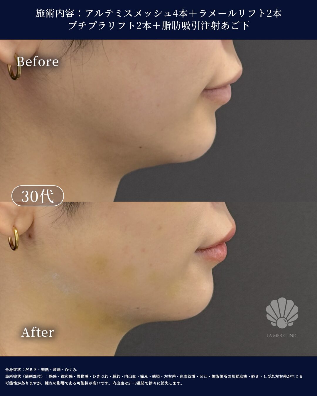 糸リフト+脂肪吸引注射(あご下)症例|フェイスラインを整え小顔へ【ラメールクリニック】