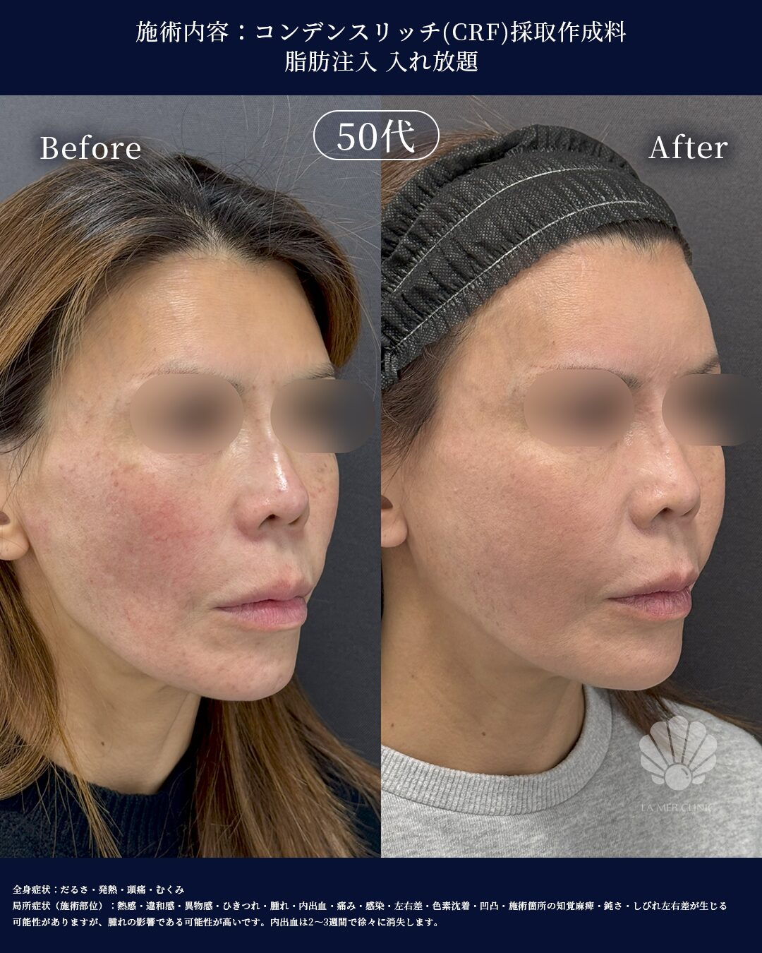 51歳女性のモニター様に対して、コンデンスリッチ脂肪注入を行いました。