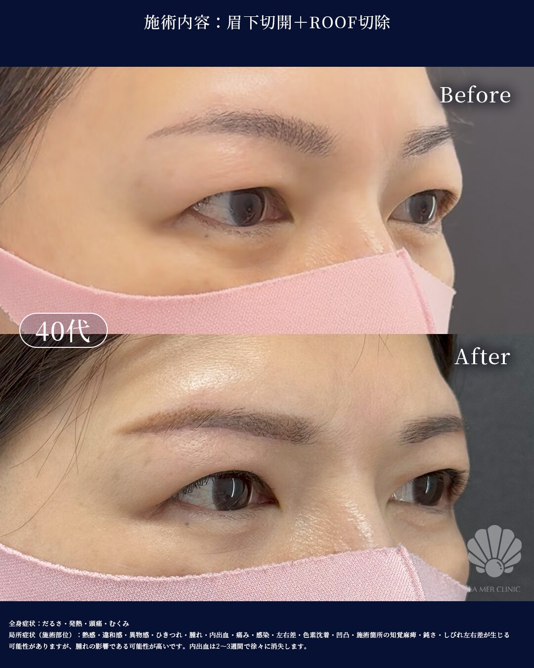 眉下切開+ROOF切除でまぶたの厚みを改善|自然な二重ラインを引き出す症例(44歳女性)まぶたのたるみ・厚みでお悩みの方へ