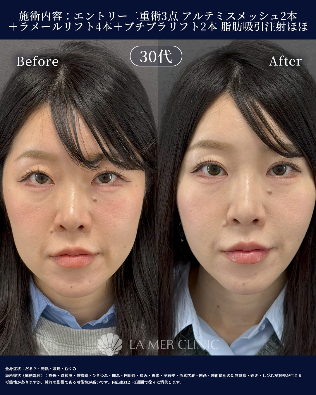 二重埋没+糸リフト+脂肪吸引注射 症例|目元とフェイスラインを同時に整える複合治療 ~1MONTH~症例情報