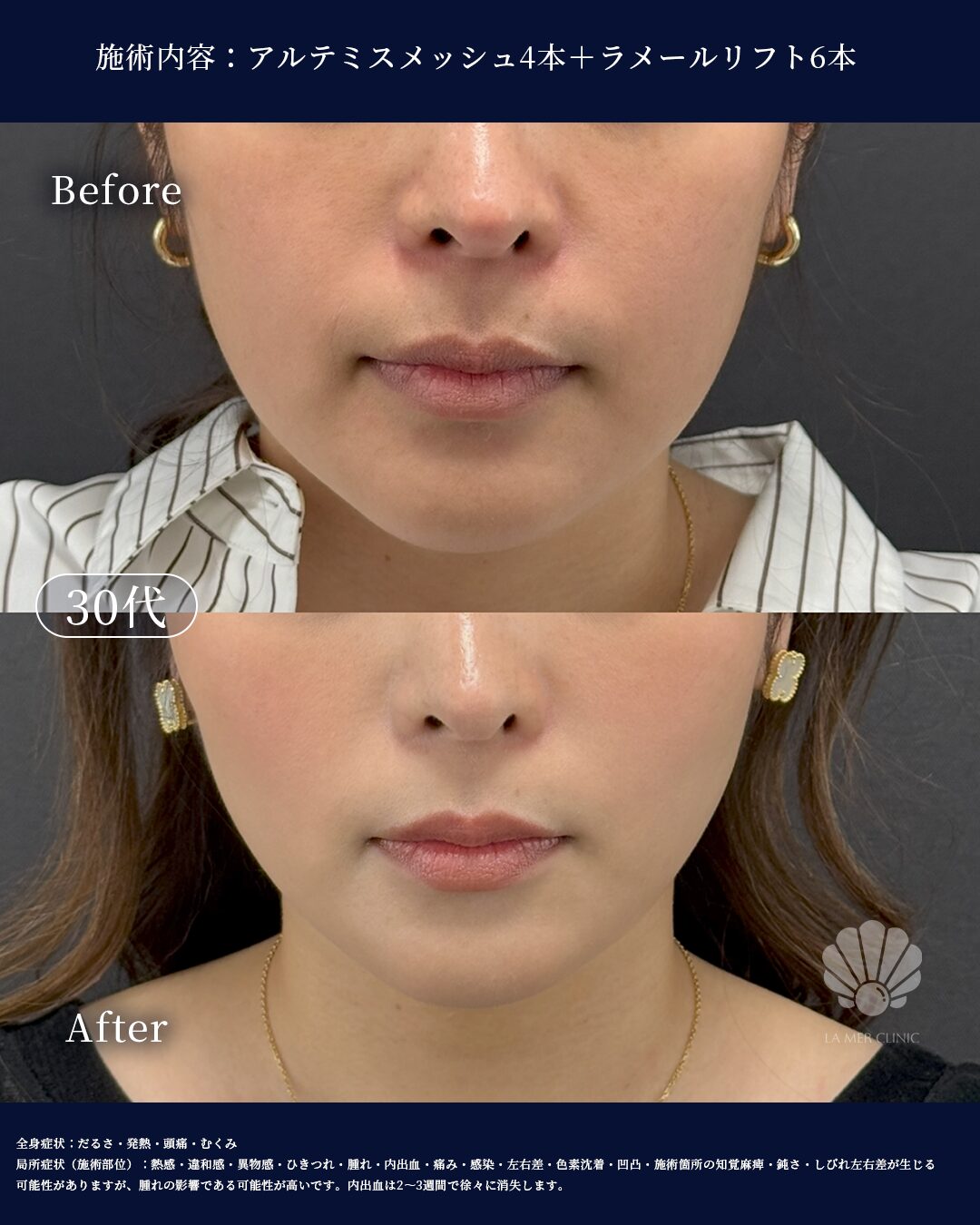 ・口元:アルテミスメッシュで支えと引き上げ