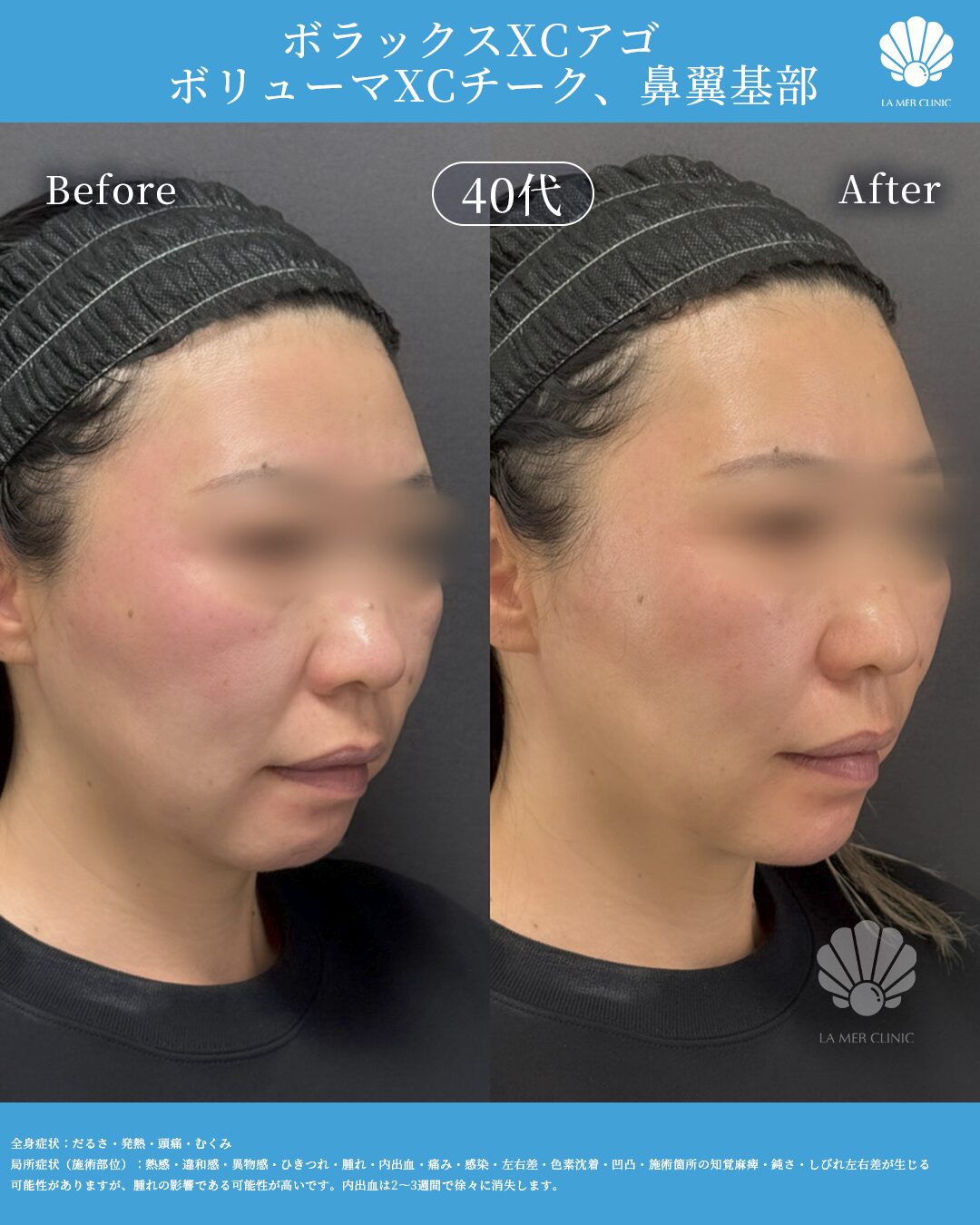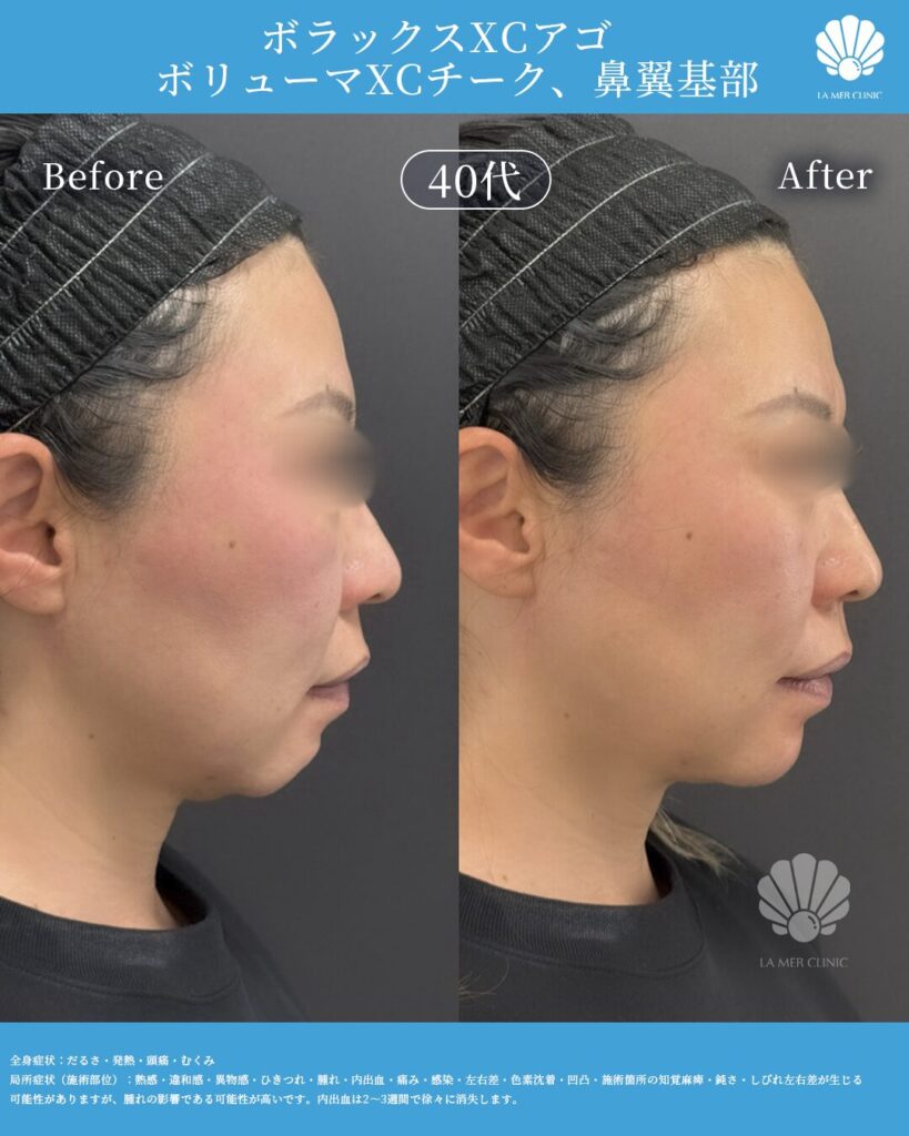 Eラインを整えるヒアルロン酸注入(アゴ・チーク・鼻翼基部)症例|46歳女性|横顔バランスを自然に改善Eラインが気になる方へ|ヒアルロン酸で整える横顔バランス