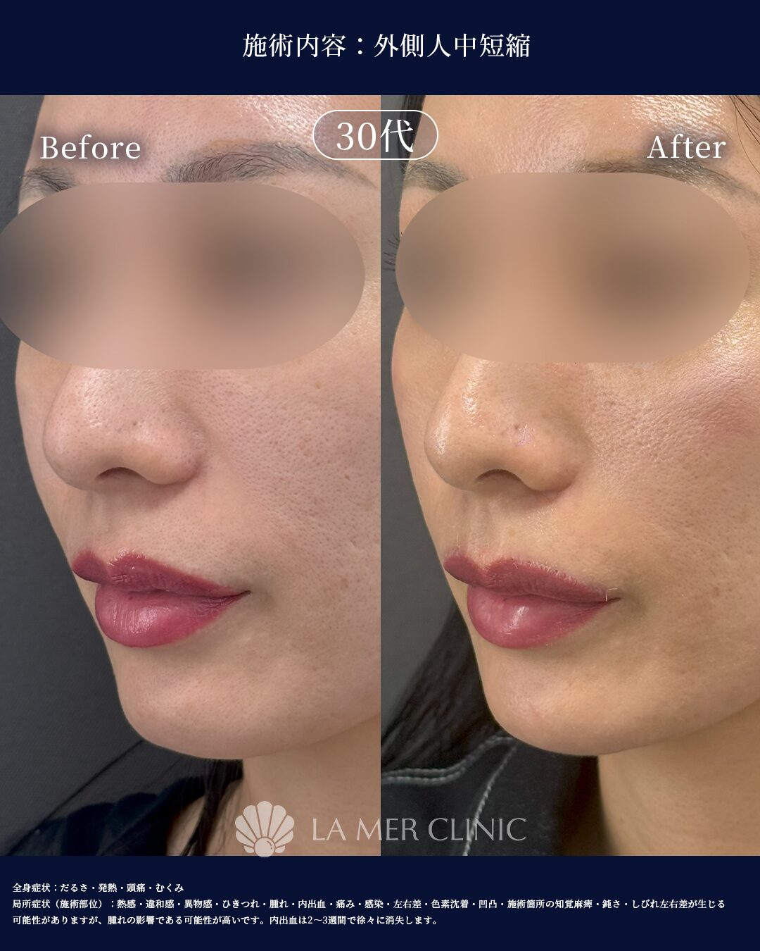 名古屋で中顔面を短くしたい方へ|外側人中短縮で自然に整える症例(39歳女性)名古屋で「中顔面を短く見せたい」「口元のバランスを整えたい」とお考えの方へ。