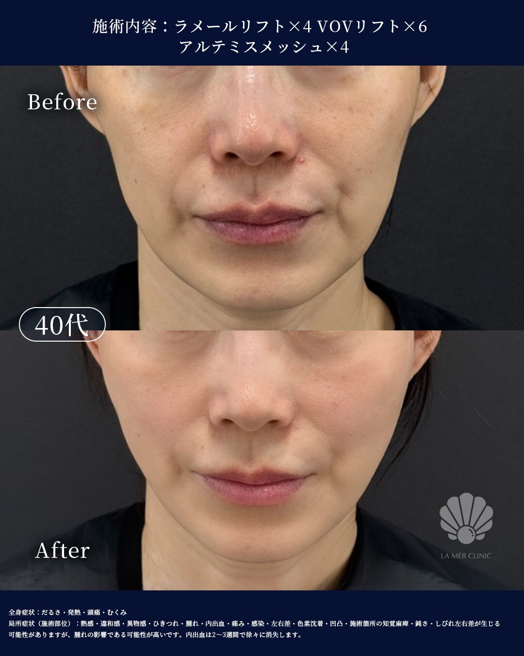 【糸リフト症例】40代|たるみ改善・予防・ほうれい線・口横のたるみ改善