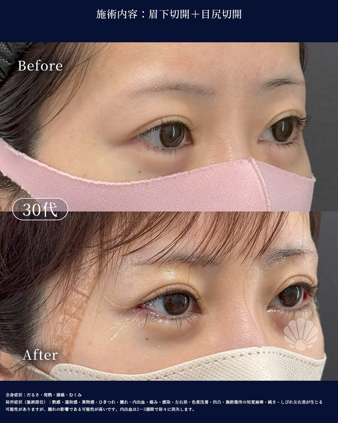 【30代女性】眉下切開+目尻切開の症例|目元のたるみ改善と横幅拡大で自然に大きな目元へ