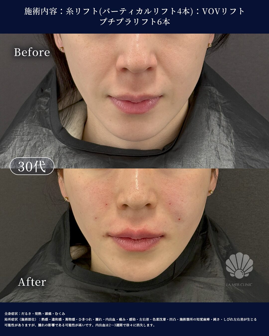 【30歳女性】糸リフト+ヒアルロン酸注入でほうれい線とフェイスラインを改善|VOVリフト症例