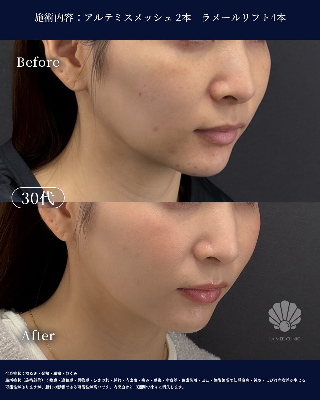 【症例紹介|42歳女性/アルテミス×ラメール×ジェネリフト 複合糸リフトでつくる“若見えフェイスライン”】