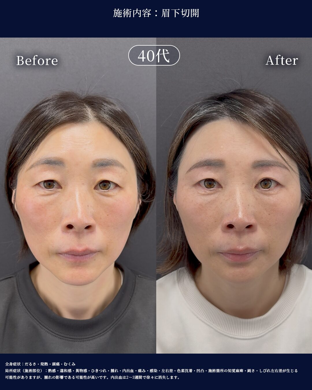 眉下切開の症例紹介|40代女性|自然で傷跡の目立たない仕上がり【ラメールクリニック】