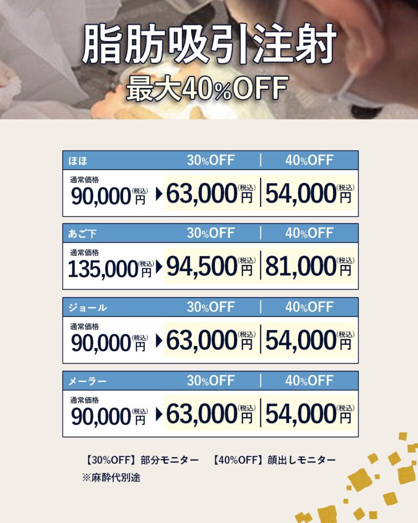 同時期に割引キャンペーンを行っているのでフェイスラインを整えたい方や小顔になりたい方は是非ご活用ください^^
