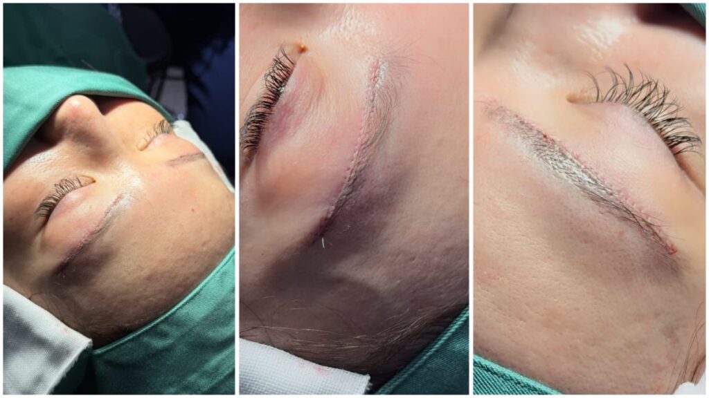 また、眉毛の流れに沿って切開・縫合を行うことで、