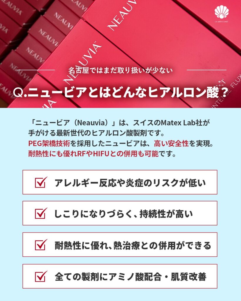 「安心してヒアルロン酸を受けたい」「名古屋でニュービアを安く受けたい」