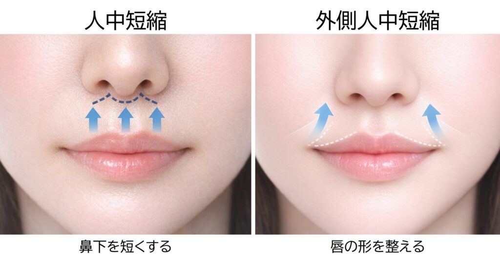 一般的に「人中短縮」と呼ばれる鼻下切開の手術とは異なり、