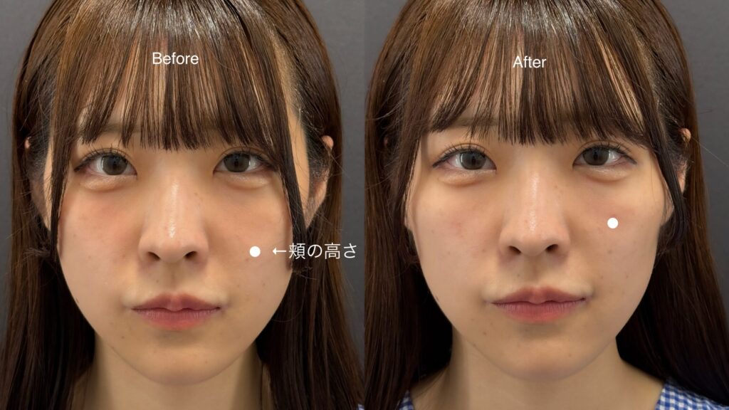 また、頬に高さが出ることでほうれい線や目の下の影が目立ちにくくなるというメリットもあります。