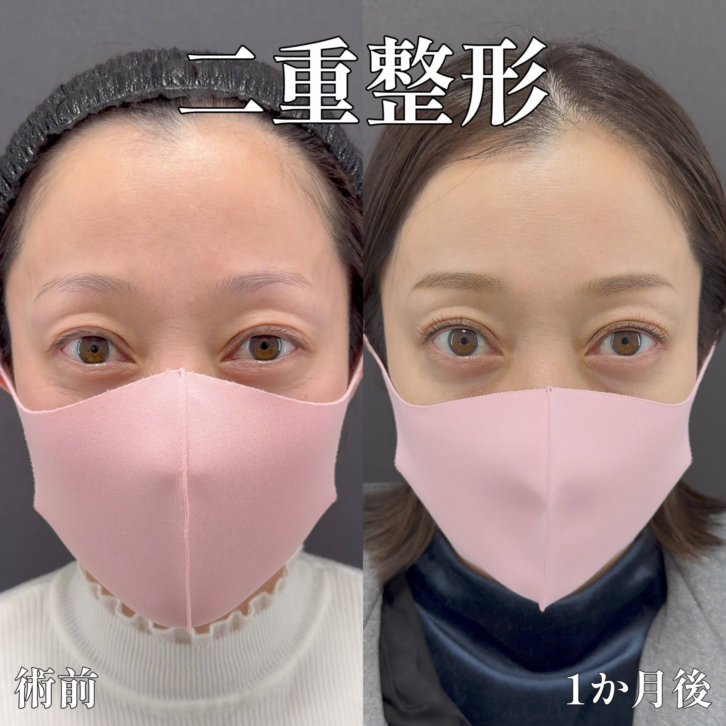 術後の腫れにより、一時的にまぶたが開きにくく、二重幅が広く見えることがあります。