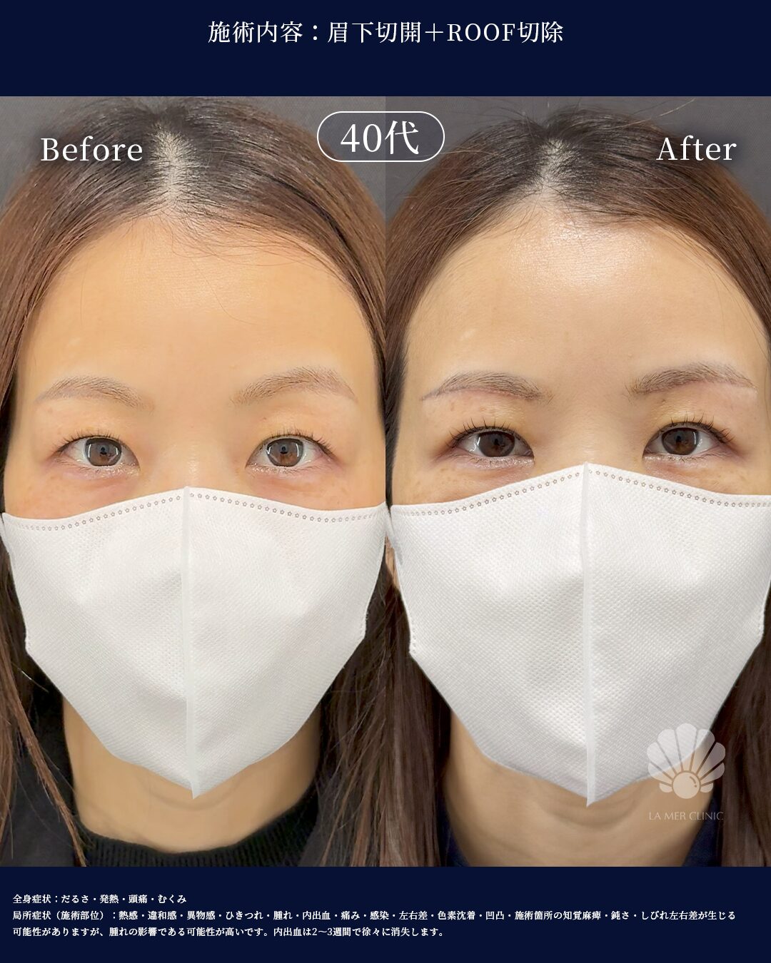 眉下切開でまぶたの重さを改善|右目のみROOF切除を併用した症例(49歳女性)|名古屋ラメールクリニック