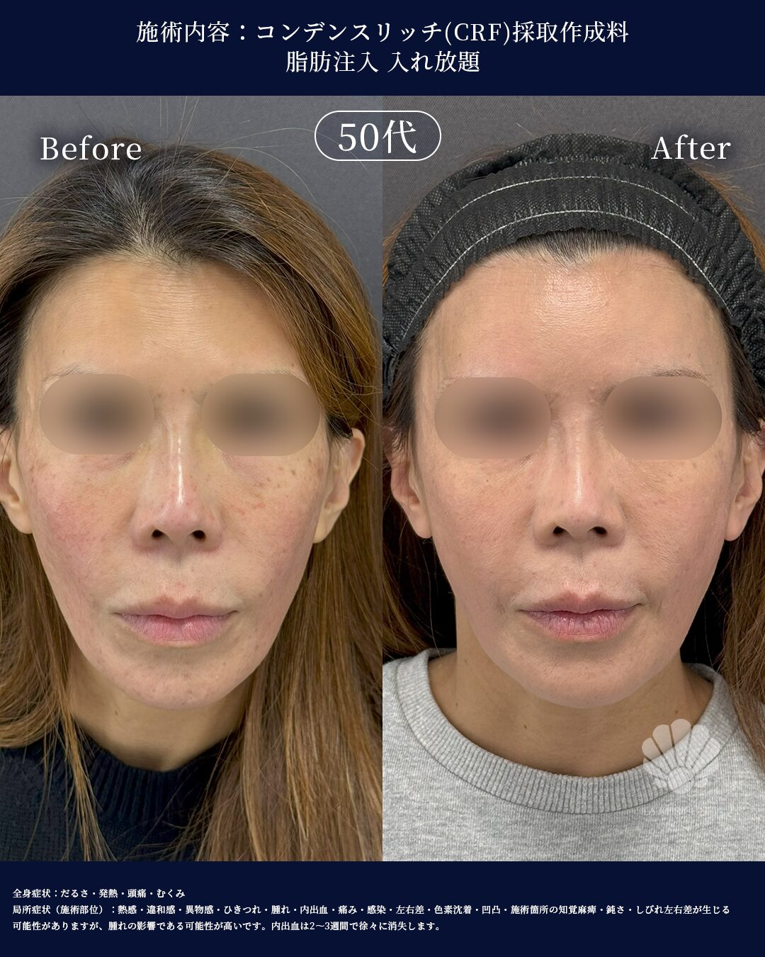 【51歳女性】脂肪注入(コンデンスリッチ)で若返り|額・こめかみ・ほうれい線を改善