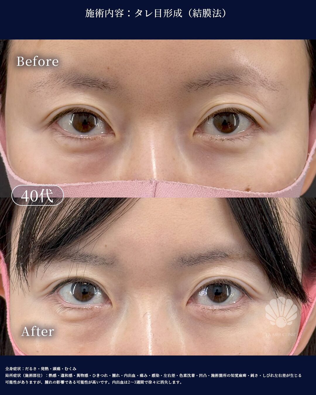 【40歳女性】タレ目形成(結膜法)+ラメールリフト|自然な優しい目元へ