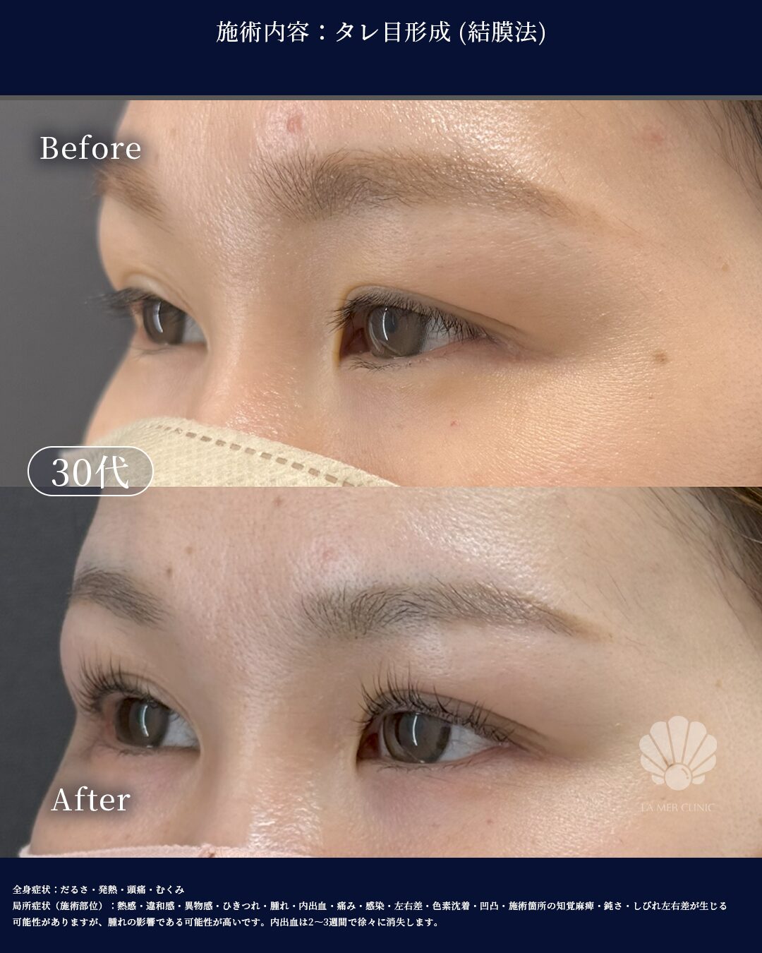 タレ目形成(結膜法)で自然な優しい目元に|35歳女性症例