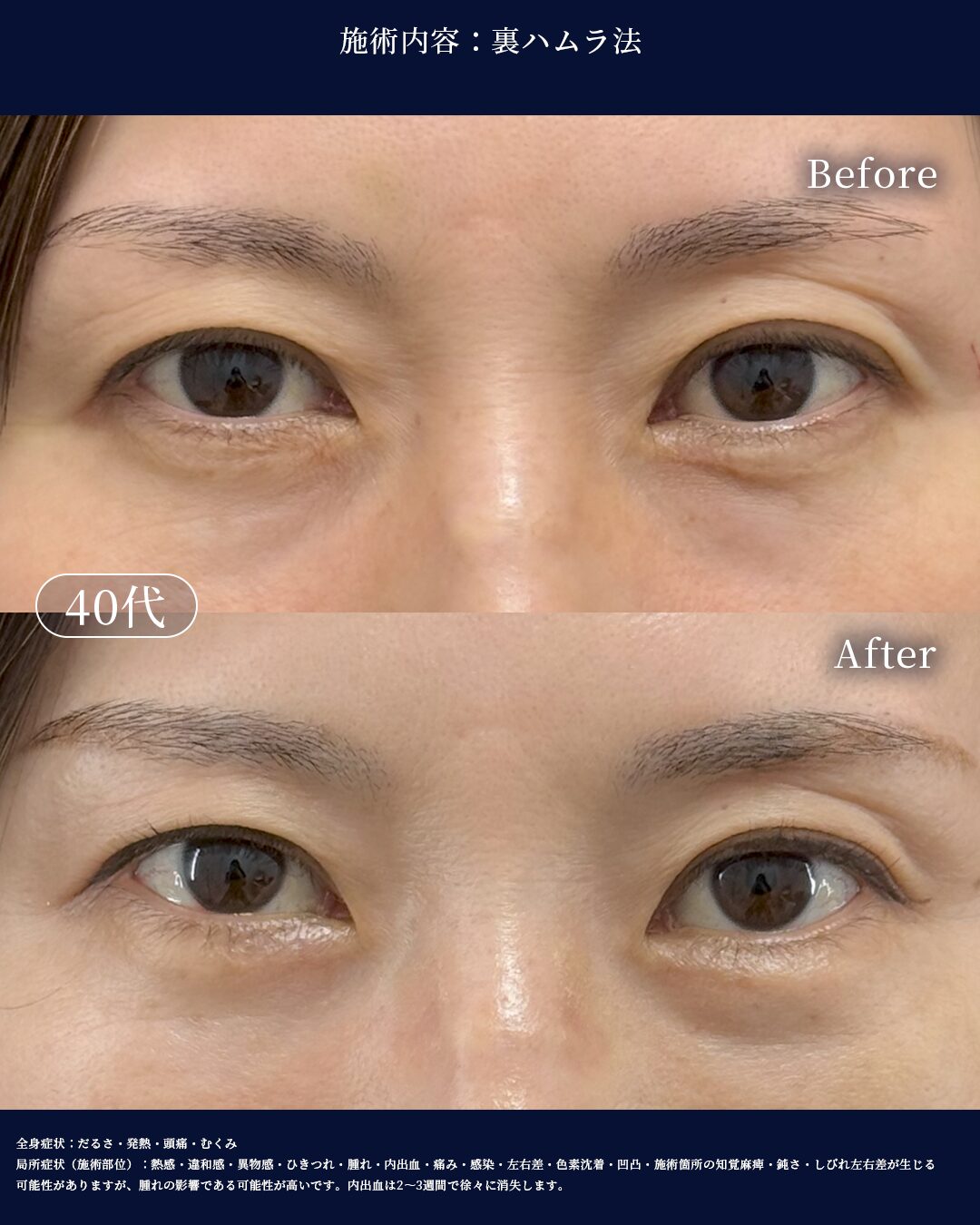 裏ハムラ法を検討している方へ 目の下のクマやたるみの治療として「裏ハムラ法」を検討される方は多いです...