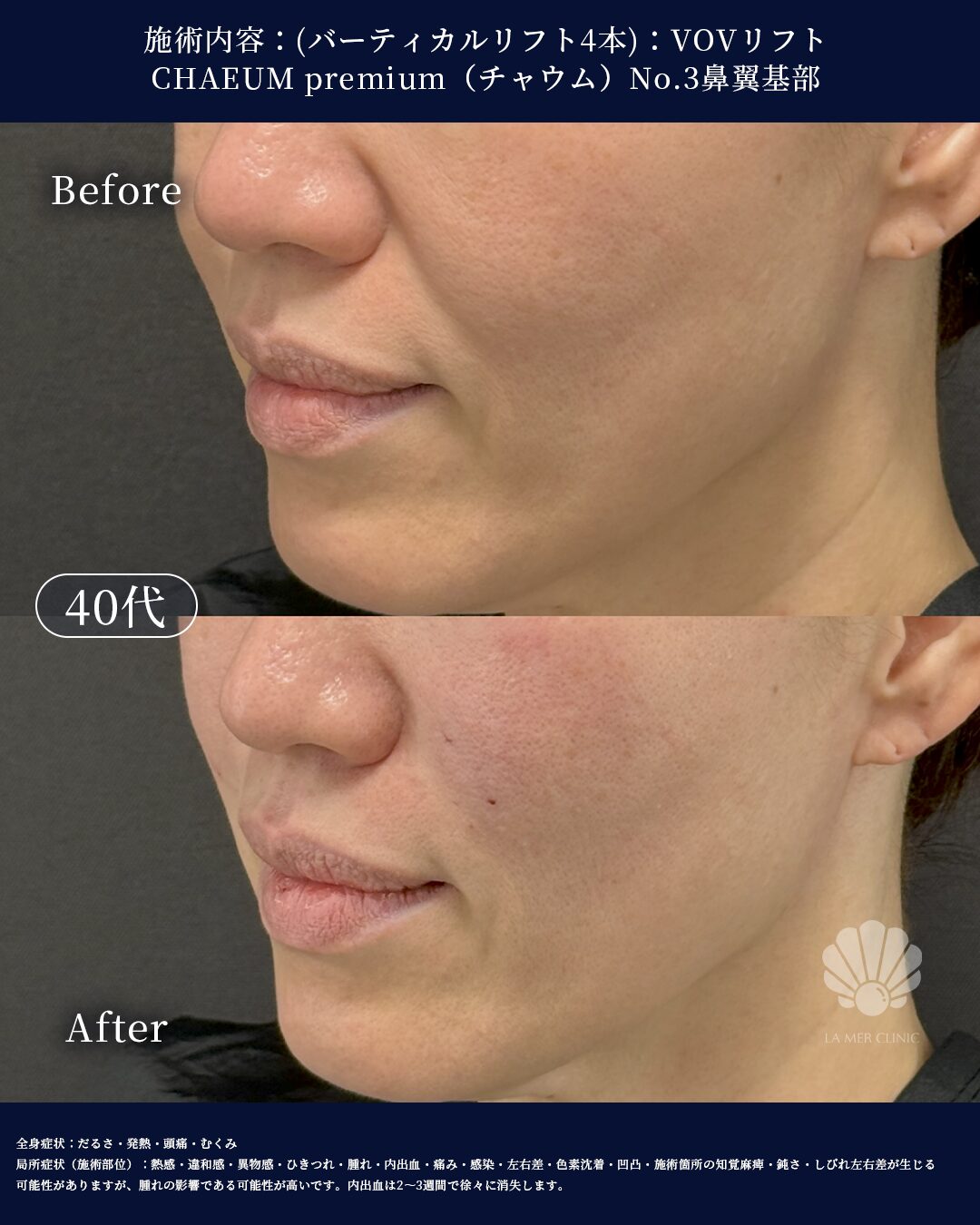 • 糸リフト後のたるみ再発に|バーティカルリフトで中顔面から引き上げ(32歳女性症例)