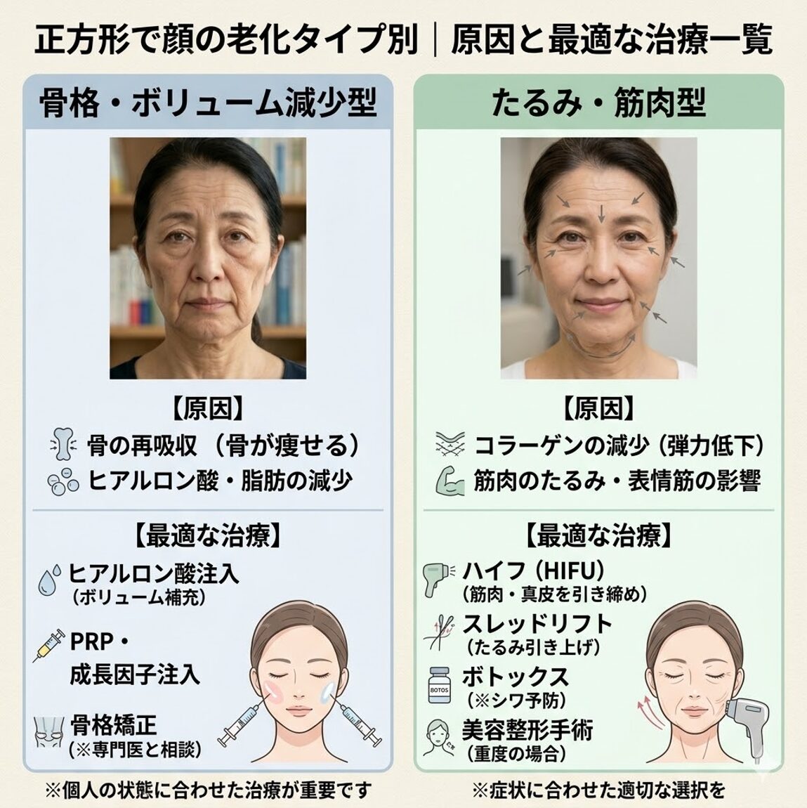 顔の老化タイプ別|原因と最適な治療一覧