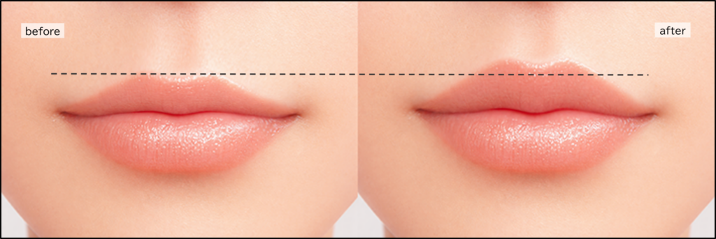 • 上唇が自然に持ち上がり、女性らしい印象に
