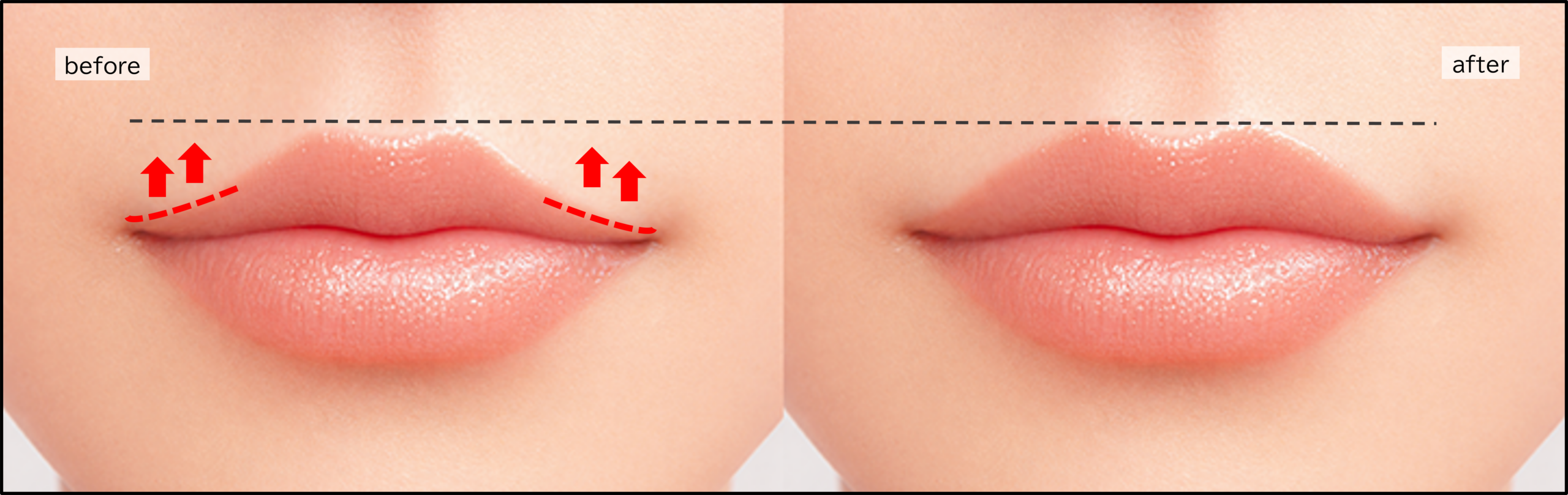 👉 可能です。口角挙上や脂肪注入と組み合わせると、さらに理想的な口元になります。