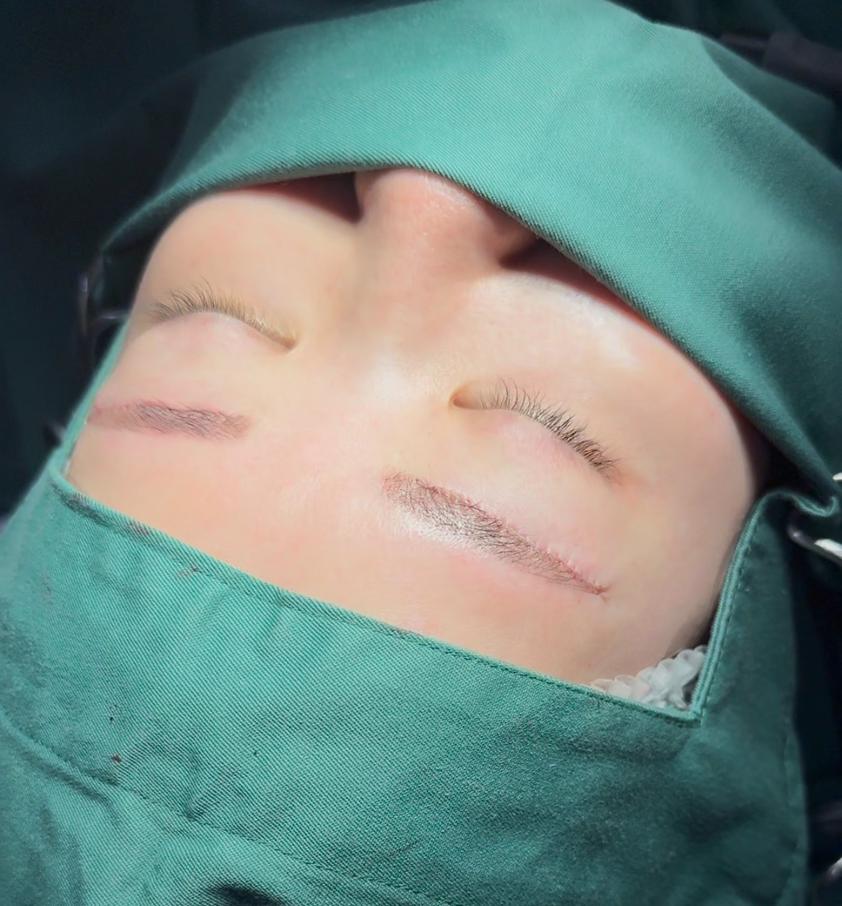 A.眉毛の下のラインに沿って切開を行うため、 時間とともに傷跡は目立ちにくくなります。