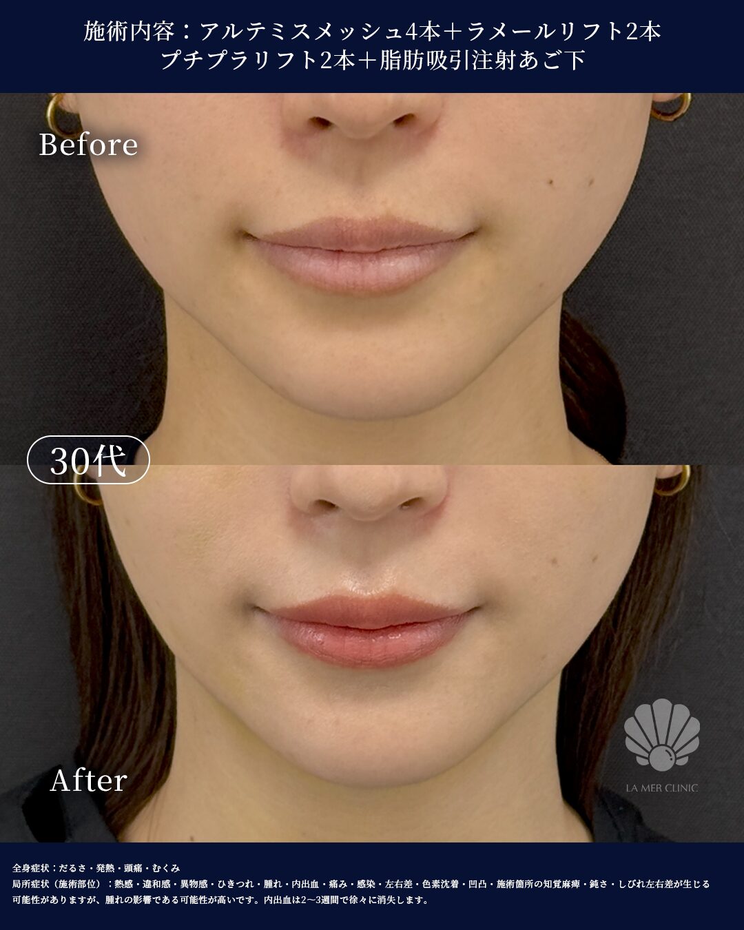 【40代/フェイスラインのもたつき改善】糸リフト+脂肪吸引注射+シュリンク症例