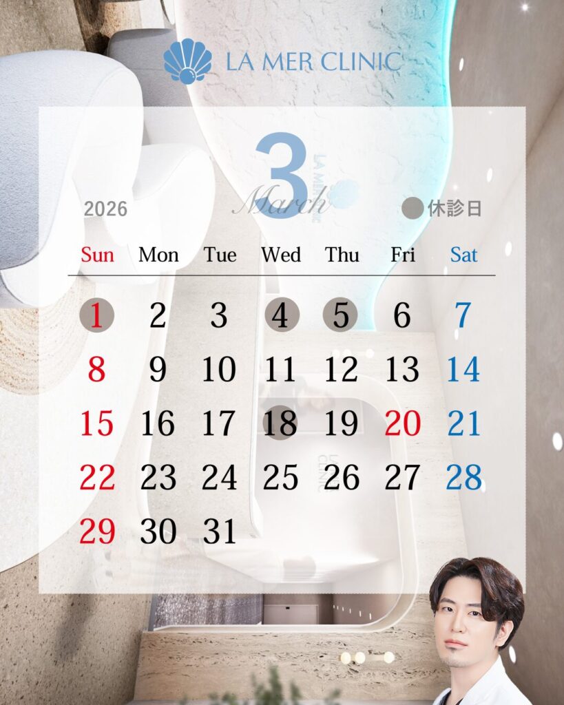 3月1日(日)、4日(水)、5日(木)、18日(水)
