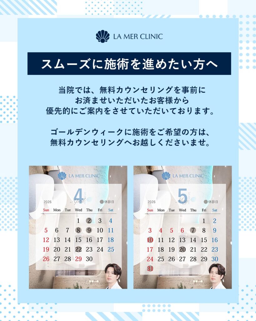 「連休中にキレイになりたい」「ダウンタイムをお休み中に取りたい」という方は今がチャンスです✨