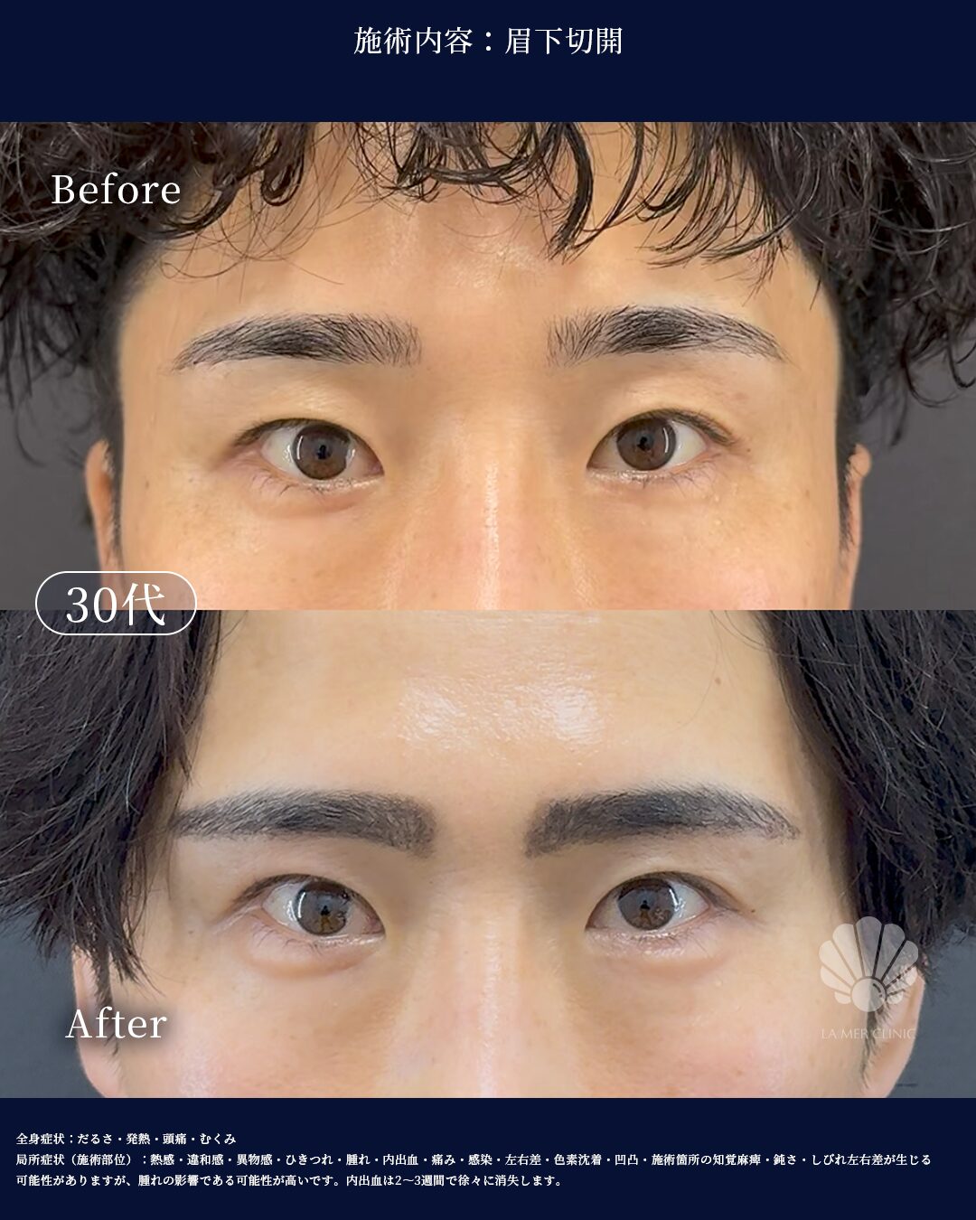 眉下切開で二重幅を自然に見せる症例【33歳男性】