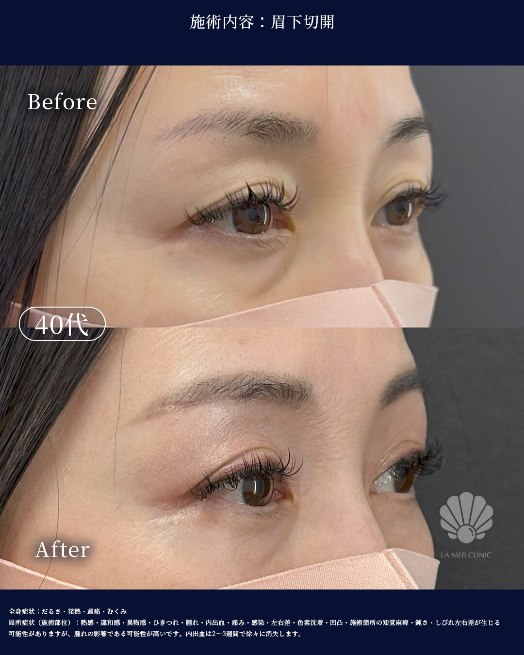 【症例】目尻側の二重幅が狭くなってきた方へ|眉下切開(46歳女性)