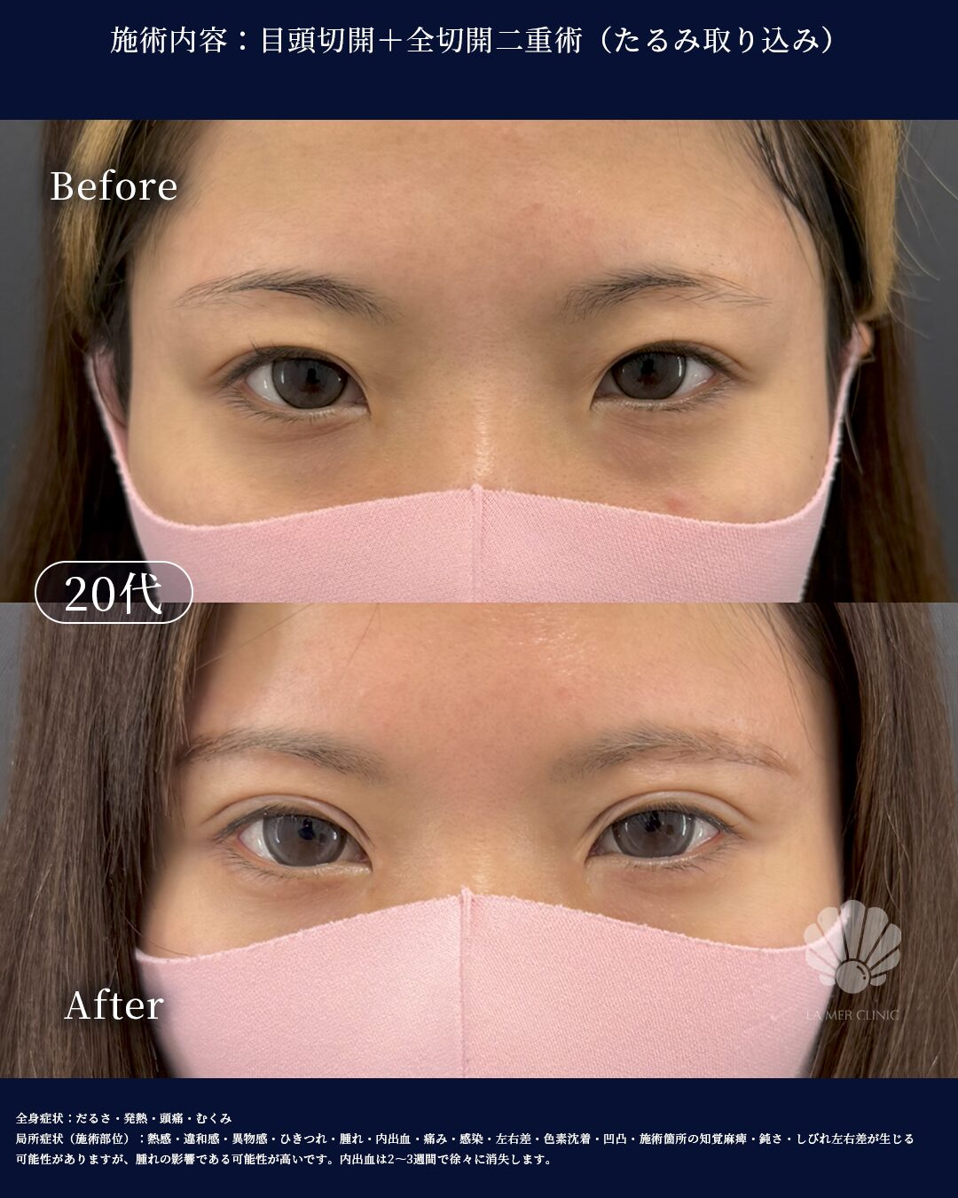 【症例】目頭切開+全切開二重術(たるみ取り込み)|二重修正症例(30歳女性)